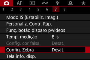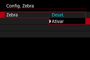 Para o ajudar a ajustar a exposição antes ou durante a gravação de um vídeo, pode visualizar um padrão listado por cima ou à volta de áreas da imagem com um brilho especificado.