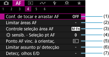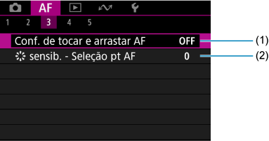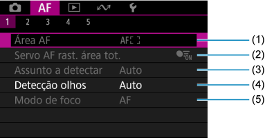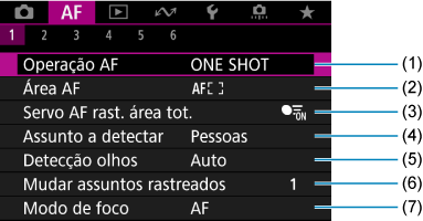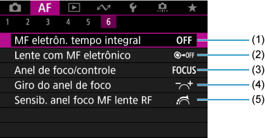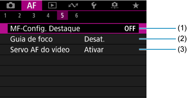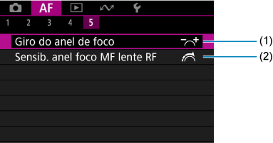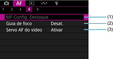- Quando são utilizadas objetivas sem interruptor de modo da focagem, é apresentado [Modo de foco] no separador [