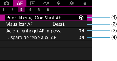 Observe que os menus disponíveis variam de acordo com o modo de disparo.