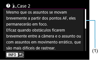 . Pressione-a novamente para sair do modo de visualização da Ajuda. Para percorrer o ecrã quando uma barra de deslocamento (1) aparece à direita, rode o seletor principal