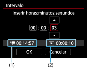 - Pode ser definido num intervalo de [00:00:02]–[99:59:59]. (Um intervalo de uma vez por segundo não está disponível.)