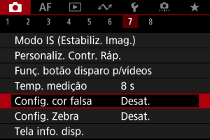 A exibição de cores falsas está disponível para imagens no ecrã da câmara e no visor. Nos seguintes tipos de monitores externos, a imagem real é exibida.