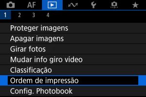 Selecione [Marcar todas na pasta] e especifique a pasta. É especificada uma ordem de impressão para uma cópia de todas as imagens na pasta.