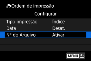 - No caso das impressões com a opção [Índice], não pode definir [Data] e [Nº do Arquivo] para [Ativar] ao mesmo tempo.