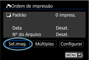 - Em seguida, selecione [Sel.imag.] ou [Múltiplas] para especificar as imagens a imprimir.