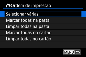 Se selecionar [Limpar todas na pasta] e escolher a pasta, é cancelada a ordem de impressão para todas as imagens na pasta.