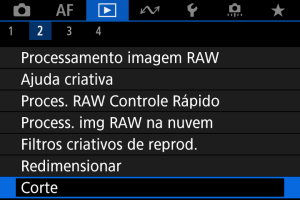 Pode cortar uma imagem JPEG ou HEIF captada e guardá-la separadamente. As imagens RAW e as imagens captadas de fotogramas de vídeos 4K não podem ser recortadas.