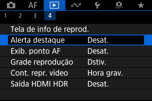 Pode especificar a intermitência do ecrã para destaques sobre-expostos no ecrã de reprodução. Para obter uma gradação mais detalhada nas áreas intermitentes em que pretende que a gradação seja reproduzida fielmente, defina a compensação da exposição para um valor negativo e grave novamente para obter um resultado melhor.