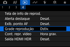 Pode apresentar uma grelha sobre as fotografias mostradas no visor de imagem única no ecrã de reprodução. Esta função é prática para verificar a composição da imagem e também se a imagem tem alguma inclinação vertical ou horizontal.