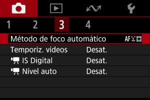 Pode alterar o método de focagem automática (método de focagem automática) para se adequar ao motivo e à cena que está a fotografar.