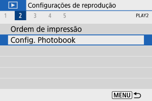 - Não utilize esta câmara para configurar definições de livro de fotografias para imagens com definições configuradas noutra câmara. As definições do livro de fotografias podem ser substituídas acidentalmente.