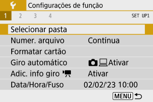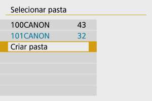 - Uma pasta pode conter um máximo de 9999 imagens (número de ficheiro 0001-9999). Quando uma pasta ficar cheia, uma nova pasta cujo número atribuído está uma unidade acima do anterior é criada automaticamente. Além disso, se executar um reinício manual (), uma nova pasta é criada automaticamente. Podem ser criadas pastas com números de 100 a 999.