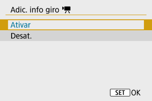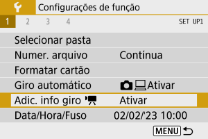 Para vídeos gravados com a câmara na vertical, informação de orientação a indicar que lado está para cima pode ser adicionada automaticamente para permitir a reprodução na mesma orientação em smartphones ou outros dispositivos.