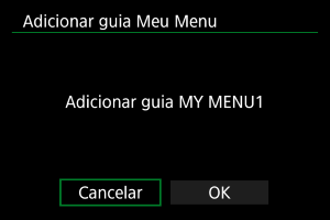 Pode eliminar o separador atual O Meu Menu. Selecione [Excluir guia] para eliminar o separador [MY MENU*].