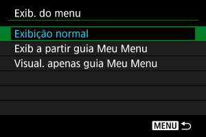 Pode selecionar [Exib. do menu] para definir o ecrã de menu que deverá aparecer primeiro quando carregar no botão .
