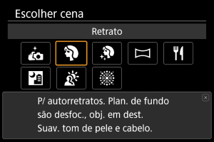 Use o modo [] (Retrato) para desfocar o fundo e destacar a pessoa que fotografa. Além disso, suaviza também os tons de pele e os cabelos.