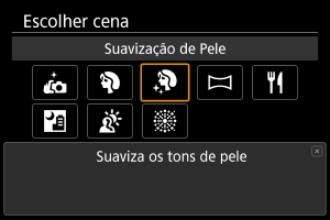 Utilize o modo [] (Suavização de Pele) para tornar a pele mais atrativa. O processamento da imagem torna a pele mais suave.