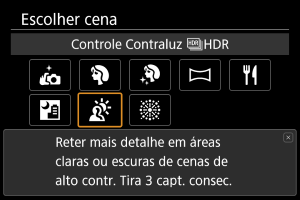 - O Controlo de Contraluz HDR pode não ser eficaz em cenas que tenham uma contraluz excessiva ou um contraste demasiado elevado.