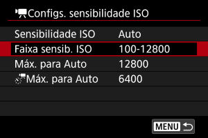 Selecione [Faixa sensib. ISO].