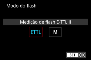 - [Medição de flash E-TTL II] é o modo padrão dos Speedlites da série EL/EX para fotografia com flash automático.