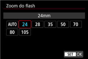 Se utilizar Speedlites com uma cabeça de flash zoom, pode definir a cobertura do flash.
