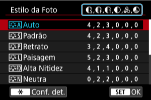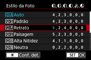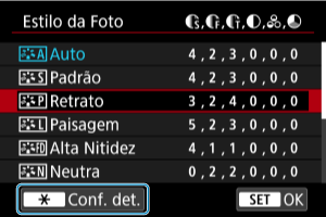 para guardar a definição ajustada e voltar ao ecrã de seleção de Estilo de Imagem.