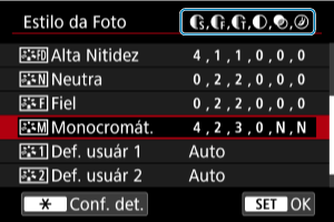 Pode personalizar qualquer Estilo Imagem alterando-o nas predefinições. Para obter detalhes sobre a personalização [Monocromát.], consulte Ajuste Monocromático.