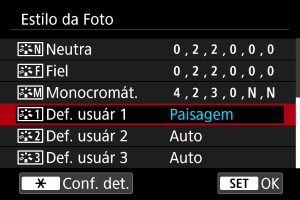 - Para fotografar com um Estilo Imagem registado, selecione a opção [Def. usuár *] registada e fotografe.