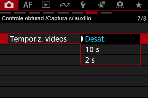 A gravação de vídeos pode ser iniciada pelo temporizador automático.