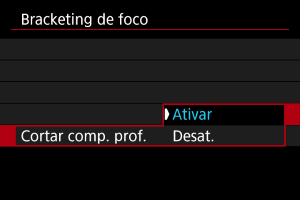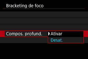 : Bracketing de foco] reverte para [Desat.] quando a alimentação é desligada.