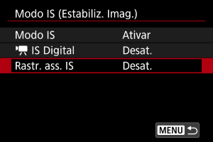 [Centr da tela] ativa a estabilização da imagem de modo a manter o motivo a ser seguido perto do centro do ecrã.