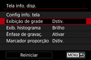 Pode personalizar os detalhes e os ecrãs de informação apresentados na câmara quando fotografa.