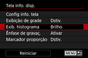 Pode selecionar o conteúdo e tamanho de visualização do histograma.