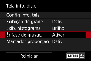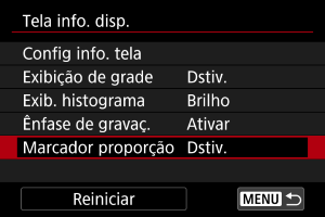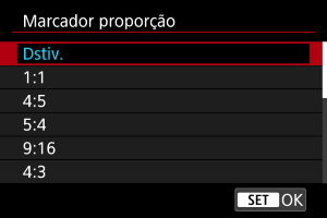 - Os marcadores não são exibidos durante a reprodução de vídeos (os vídeos gravados não são marcados com informação do marcador de rácio).