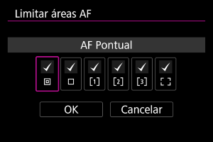 Pode agora limitar as áreas AF selecionáveis. Para detalhes sobre as áreas AF, consulte Área AF.