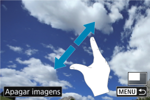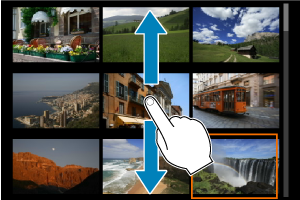 A câmara dispõe de um painel de ecrã tátil que pode usar para controlar a reprodução. As operações táteis suportadas são iguais às usadas com smartphones e dispositivos similares. Primeiro, carregue no botão para preparar para a reprodução por toque.