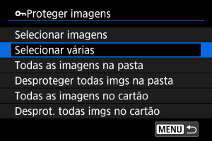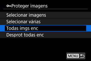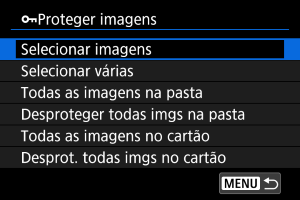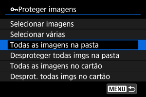- Para cancelar a proteção, selecione [Desproteger todas imgs na pasta] ou [Desprot. todas imgs no cartão].