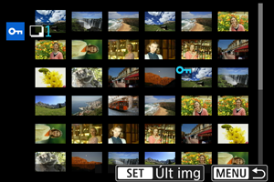 Durante a visualização das imagens no visor de índice, pode especificar a primeira e última imagens de um intervalo para proteger as imagens especificadas de uma só vez.