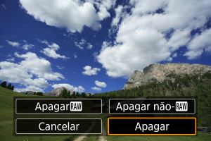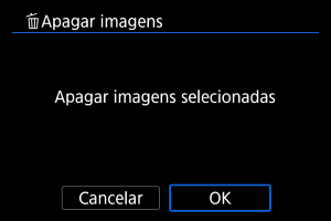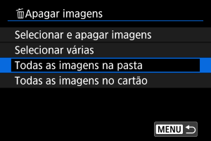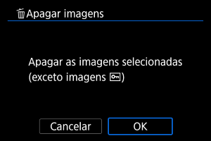 • Quando selecionar [Todas as imagens na pasta] ou [Todas as imagens no cartão] em [Reprodução: Apagar imagens], todas as imagens na pasta ou no cartão serão apagadas.