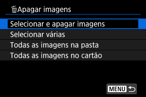 • Selecione [Selecionar várias] em [Reprodução: Apagar imagens].