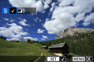• Rode o seletor principal Botão de controlo para selecionar uma imagem a apagar e prima Controlo Rápido/Definição.