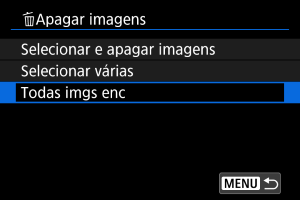 • Se selecionar [Todas imgs enc], todas as imagens filtradas pelas condições de procura serão apagadas.
