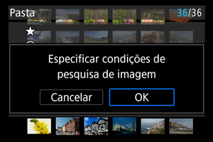 - As condições de pesquisa podem ser apagadas após operações que envolvam a alimentação da câmara ou alterações no cartão e edição, adição ou exclusão de imagens.
