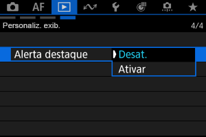 Pode especificar a intermitência do ecrã para destaques sobre-expostos no ecrã de reprodução. Para obter uma gradação mais detalhada nas áreas intermitentes em que pretende que a gradação seja reproduzida fielmente, defina a compensação da exposição para um valor negativo e grave novamente para obter um resultado melhor.