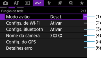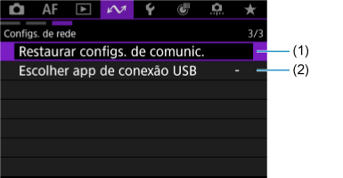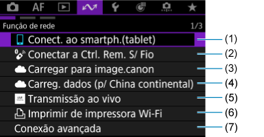 - Algumas opções do menu não podem ser configuradas enquanto a câmara estiver ligada a computadores ou outros dispositivos através de um cabo de interface.