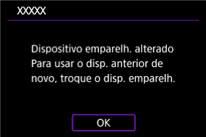 - É apresentada uma mensagem se a câmara já estiver emparelhada com outro dispositivo. Selecione [OK] para terminar a ligação Bluetooth atual.