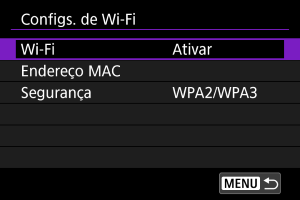 Selecione o protocolo de Segurança quando estabelecer ligação no modo de ponto de acesso à câmara.