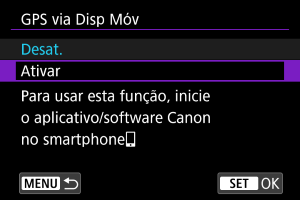 - O smartphone pode adquirir informações de localização somente enquanto estiver emparelhado com a câmara por Bluetooth.