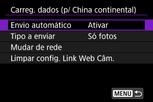 - [Quando a câmera está ligada]: O envio automático inicia-se quando a câmara é ligada.