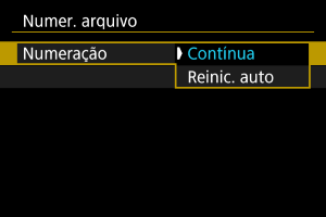 As imagens captadas guardadas numa pasta recebem um número de ficheiro de 0001 a 9999. Pode alterar a maneira como os ficheiros de imagem são numerados.